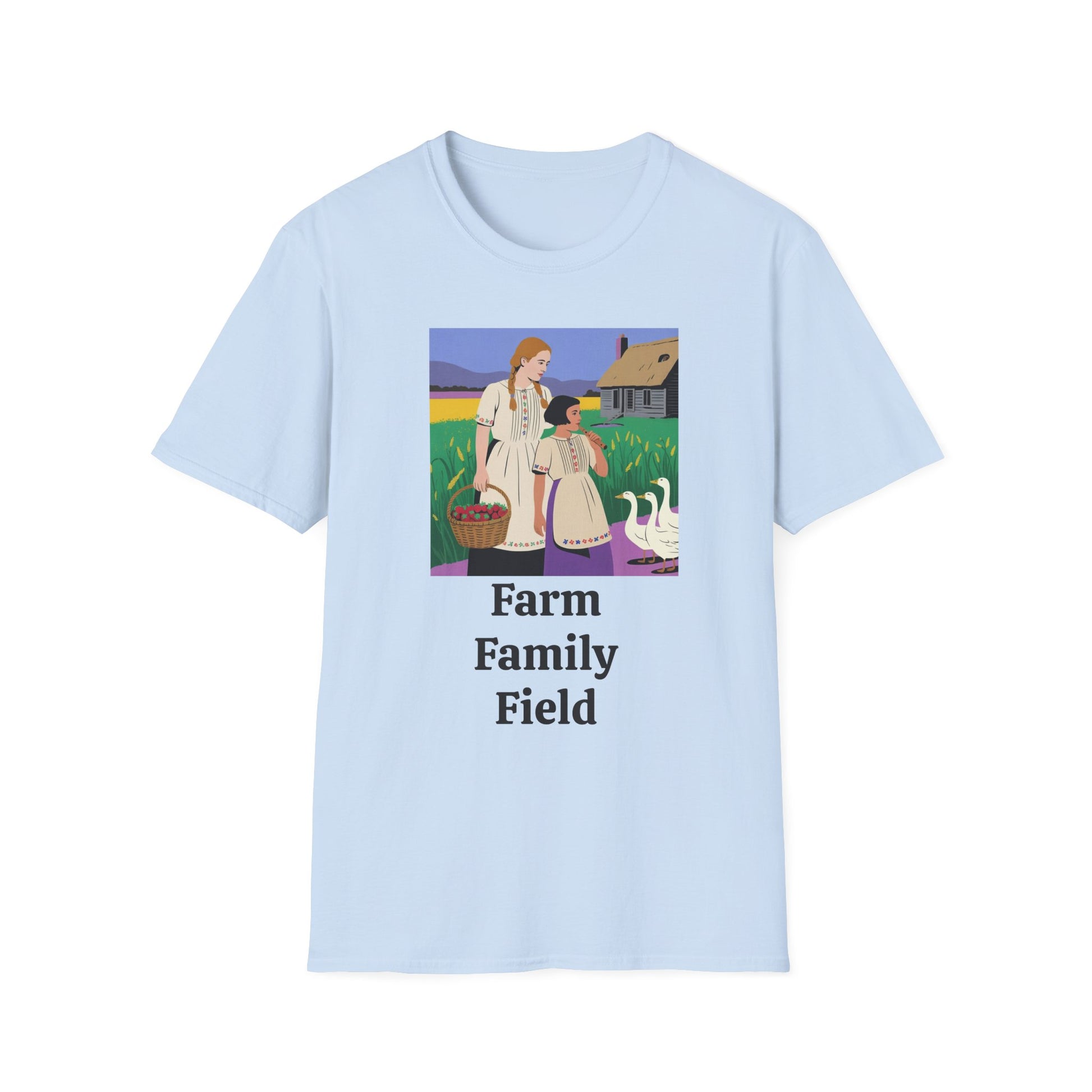 Introducing a delightful unisex softstyle t-shirt that captures the warmth of family and the beauty of nature. Perfect for casual outings or family gatherings, this shirt effortlessly blends comfort and style, making it an ideal addition to anyone's wardrobe. With its vibrant, farm-themed design, it resonates with those who cherish rural life and family traditions. Whether you're celebrating a holiday, attending a picnic, or simply enjoying a sunny day outside, this shirt embodies a relaxed and inviting vibe. It's a perfect gift for family-oriented individuals, nature lovers, and anyone who appreciates artistic expression in their clothing.